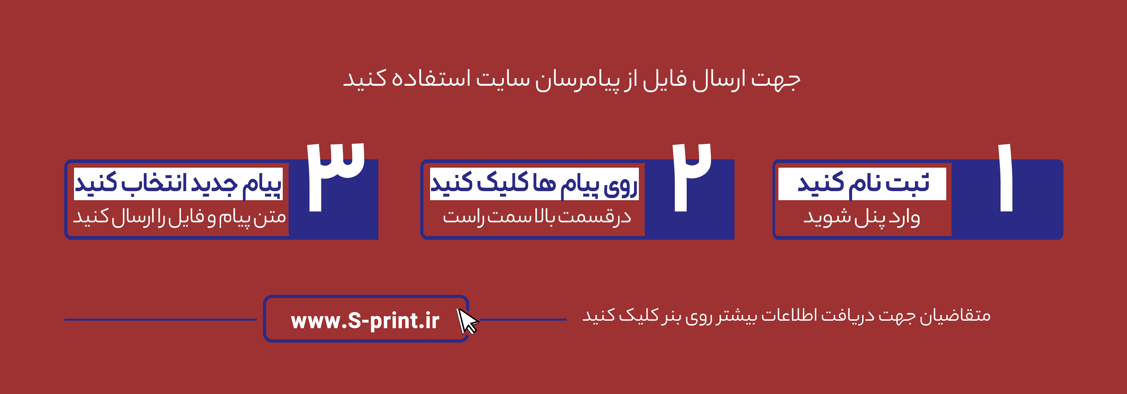 بعد از ثبت سفارش، فایلهای شما توسط تیم طراحی ما بهصورت تخصصی بررسی میشن — از اندازه و رزولوشن گرفته تا رنگها و جزئیات چاپی. اگه نیاز به اصلاح باشه و امکان ویرایش از طرف ما وجود نداشته باشه، باهاتون تماس میگیریم تا نسخهی نهایی بدون هیچ ایرادی آماده چاپ بشه. با خیال راحت سفارش بده؛ ما حواسمون به همهچیز هست! همین حالا اقدام کن و باقی مسیر رو بسپار به تیم حرفهای سهند.